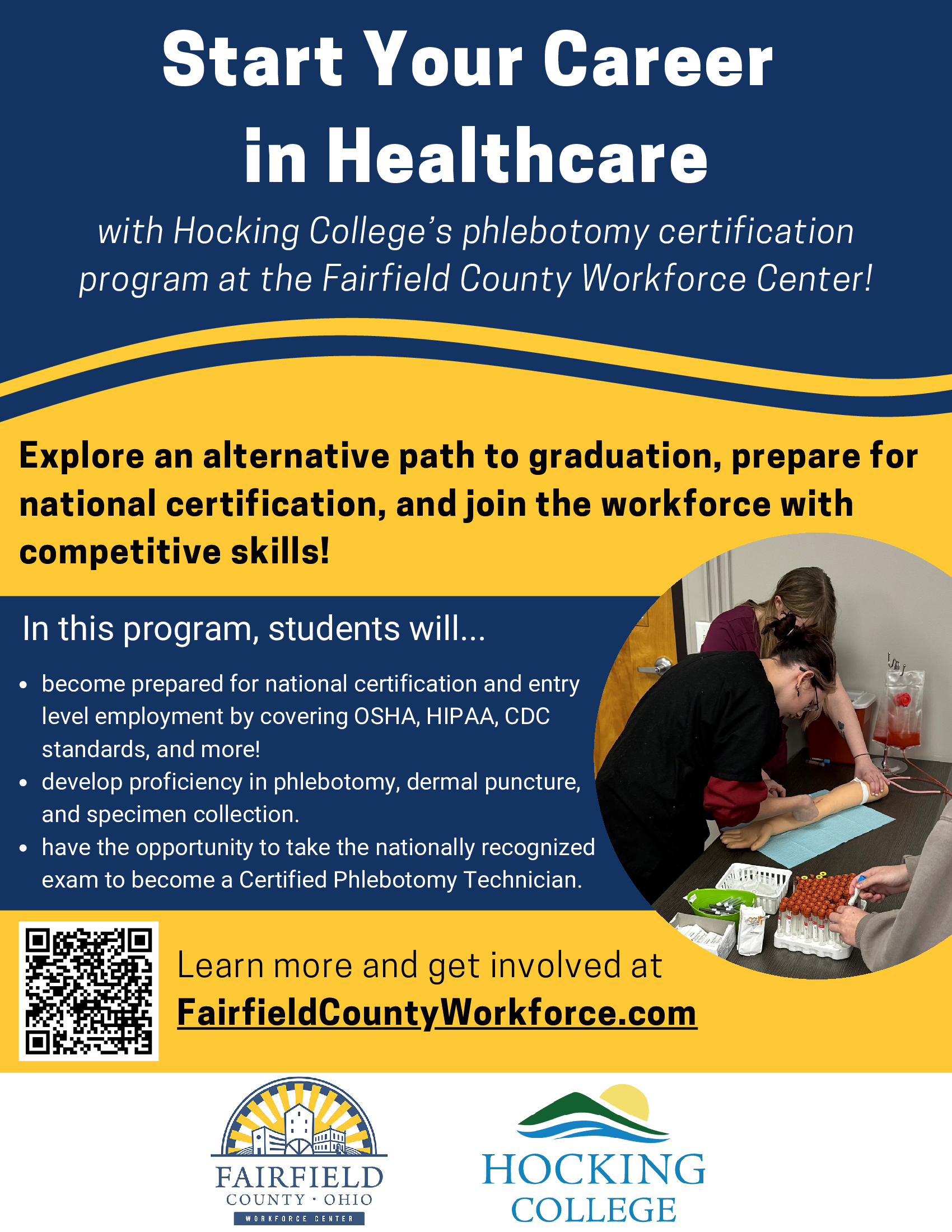 The Phlebotomy course is a none credit program, but students will have the opportunity to prepare for and take the nationally recognized exam to become a Certified Phlebotomy Technician once they have passed the initial coursework with a grade of 70% or higher.